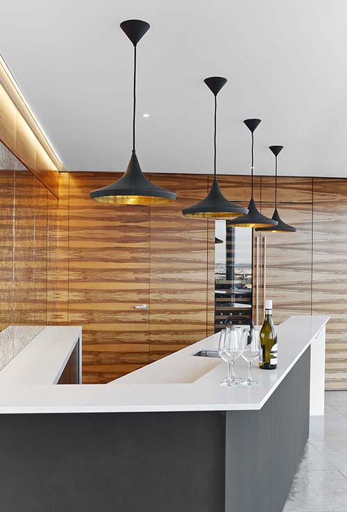 Sands Capital Management, an investment firm located in Washington DC, renovated their office building and used Landcross Red Gum veneer (also known as Satin Walnut) for the wallcovering. There was a very specific look the designers were trying to achieve with regard to figure and variation. Red Gum has the contrasting variation in the heartwood that appealed to both the design team and the client.